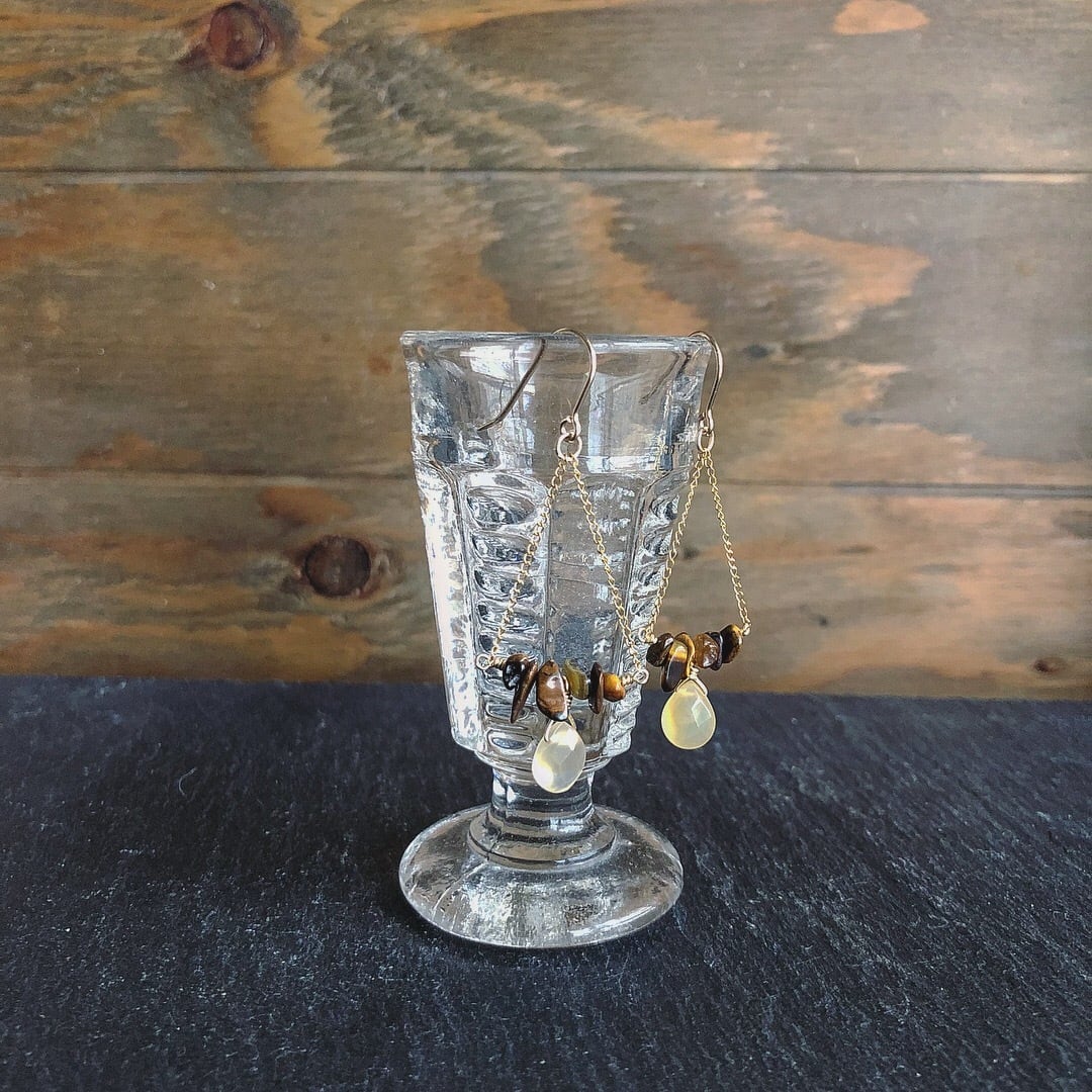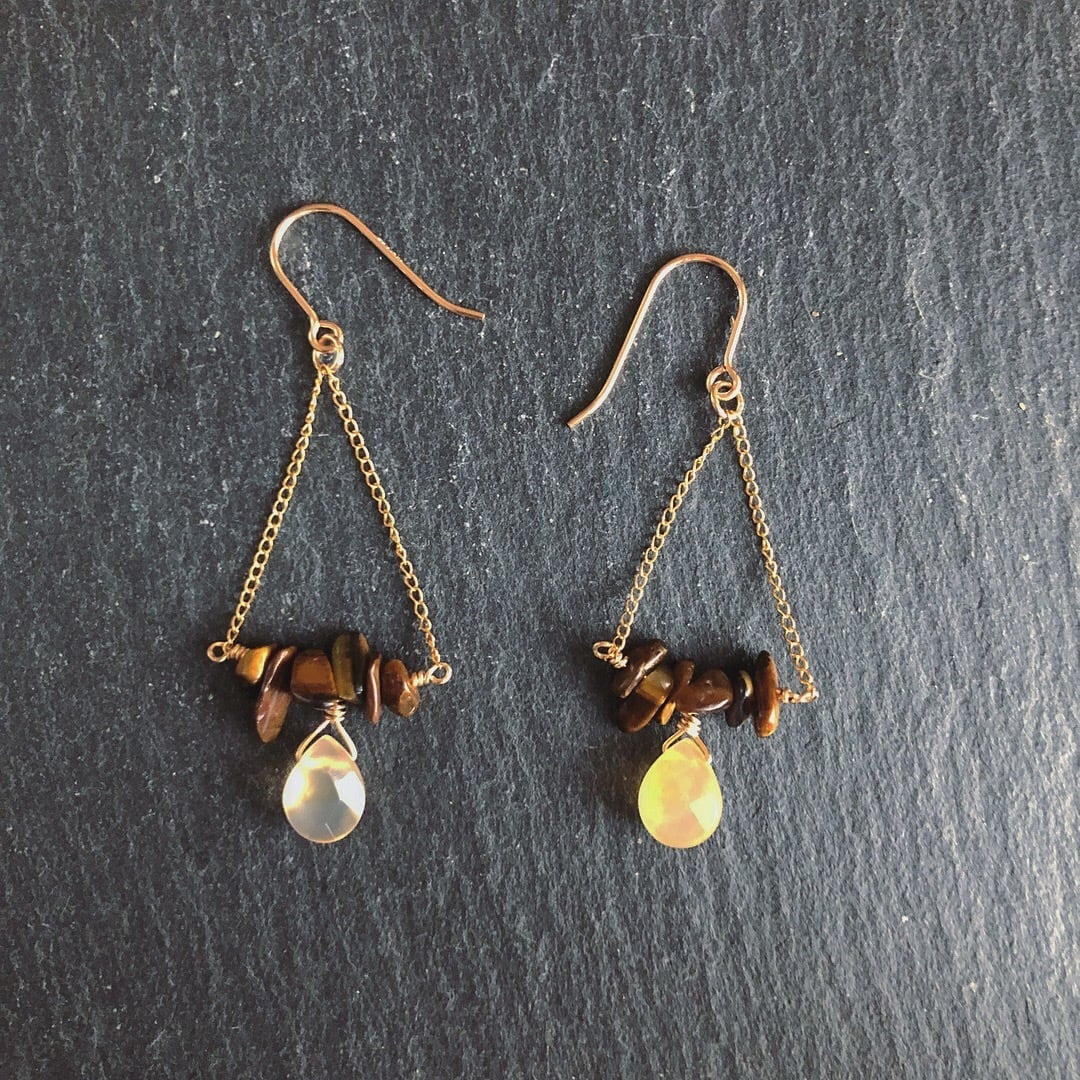 タイガーアイ×カーネリアンのトライアングルチェーンピアス