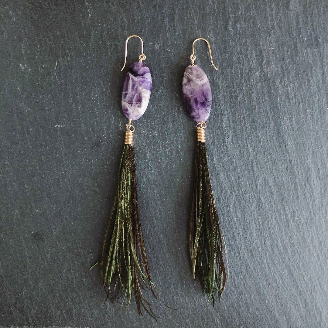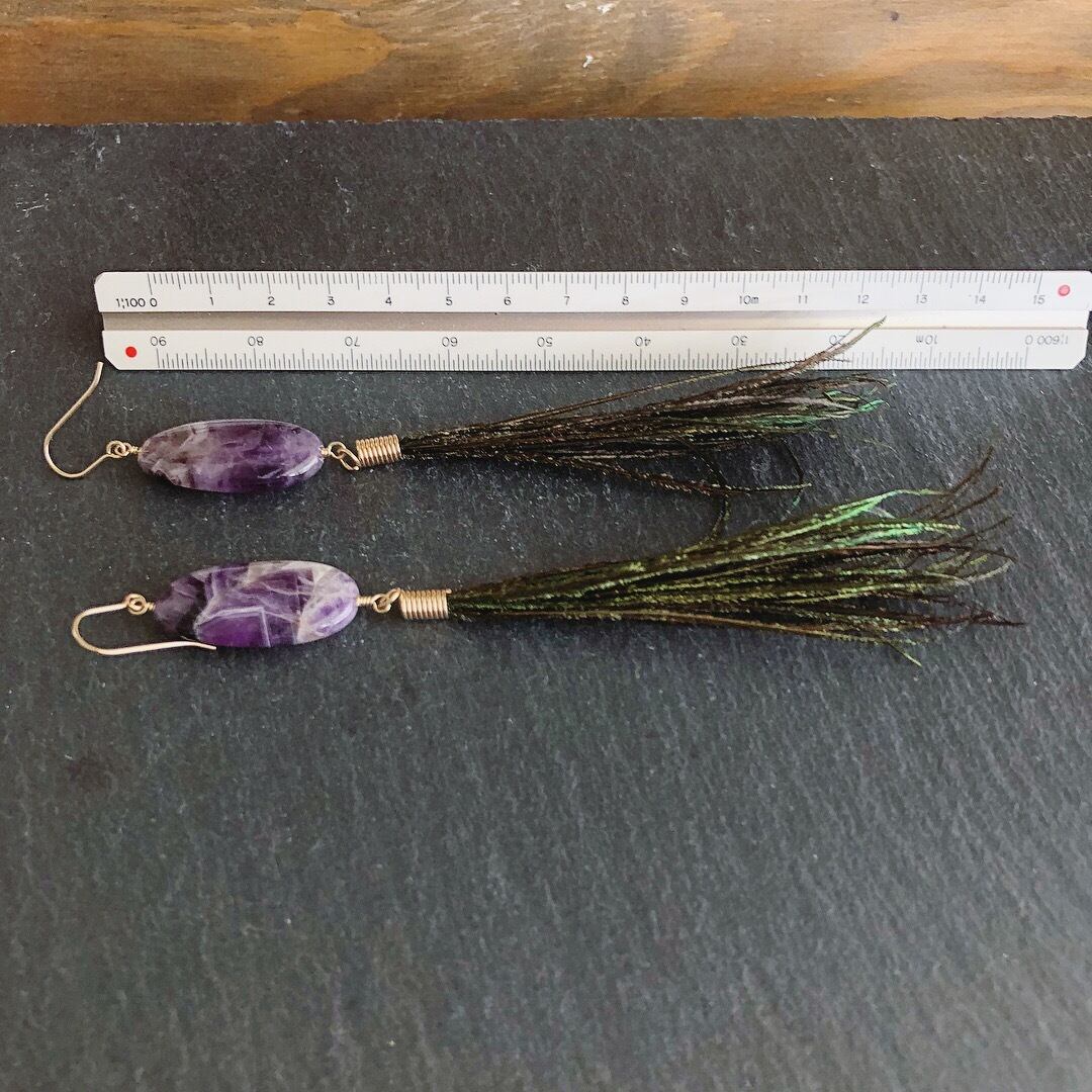 シェブロンアメジスト×ピーコックフェザーのピアス