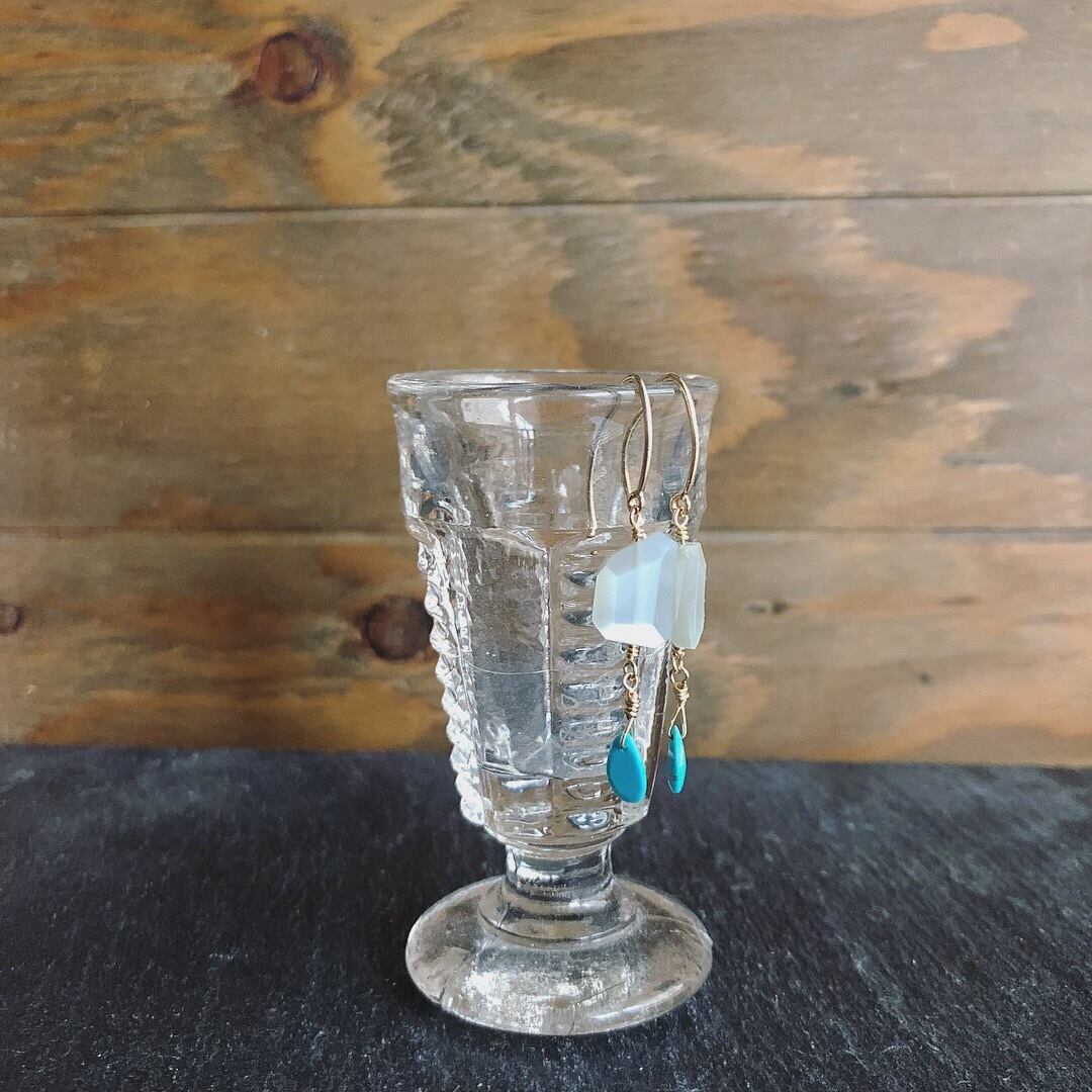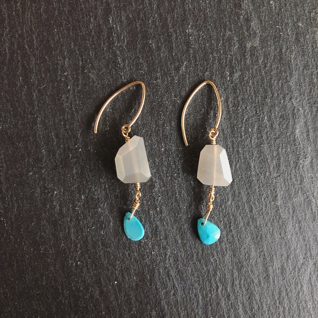 グレームーンストーン×スリーピングビューティーターコイズのピアス