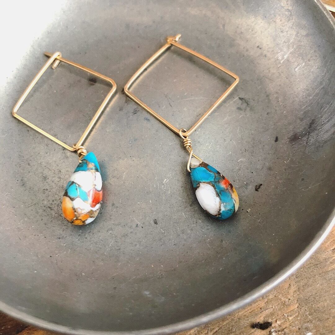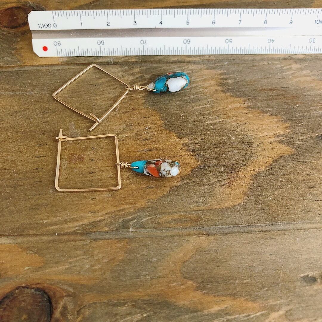 【再入荷】【売約済】オイスターカッパーターコイズのシンプルスクエアピアス
