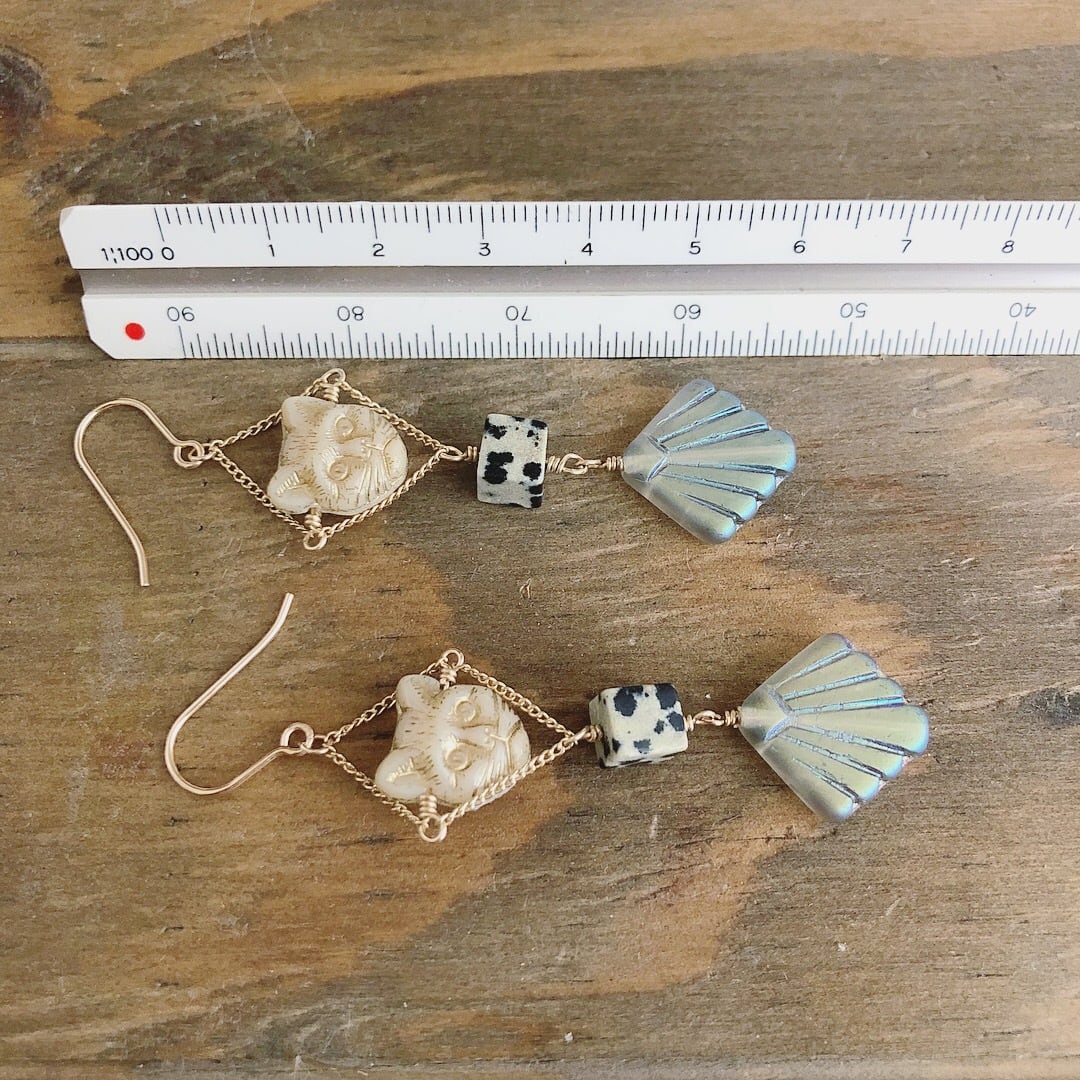 チェコビーズ×ダルメシアンジャスパーの猫フェイスピアス