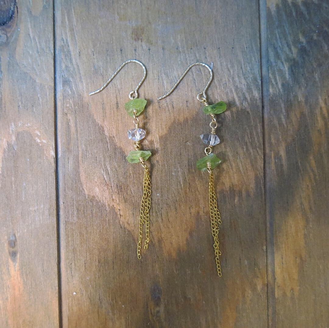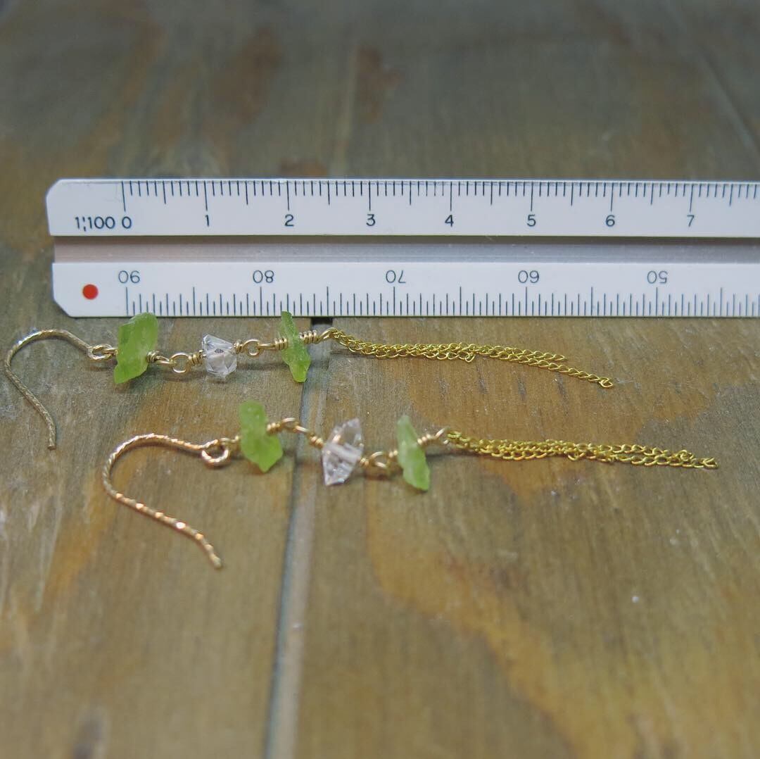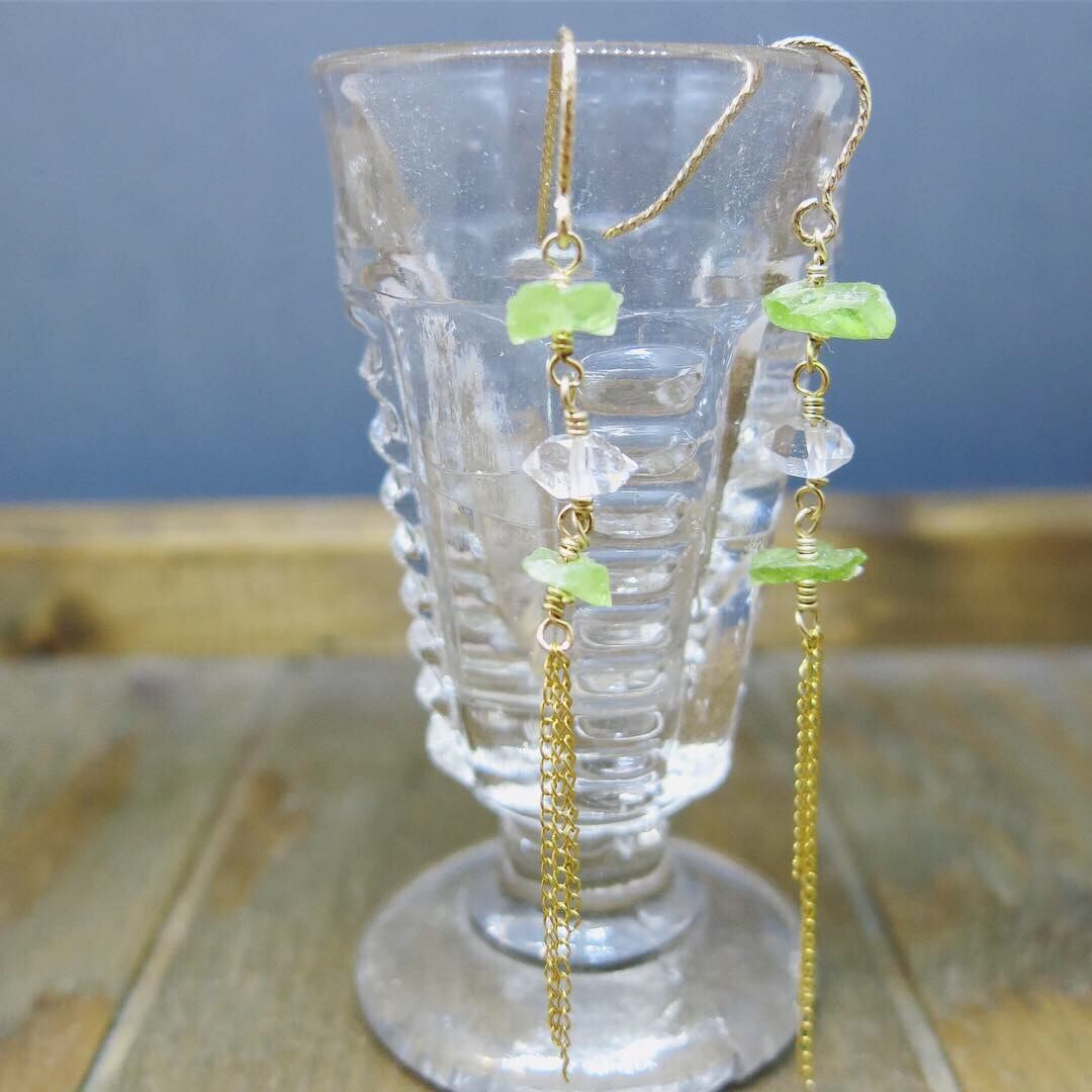 【オーダーメイド】ペリドット×ハーキマーダイヤモンドのチェーンピアス