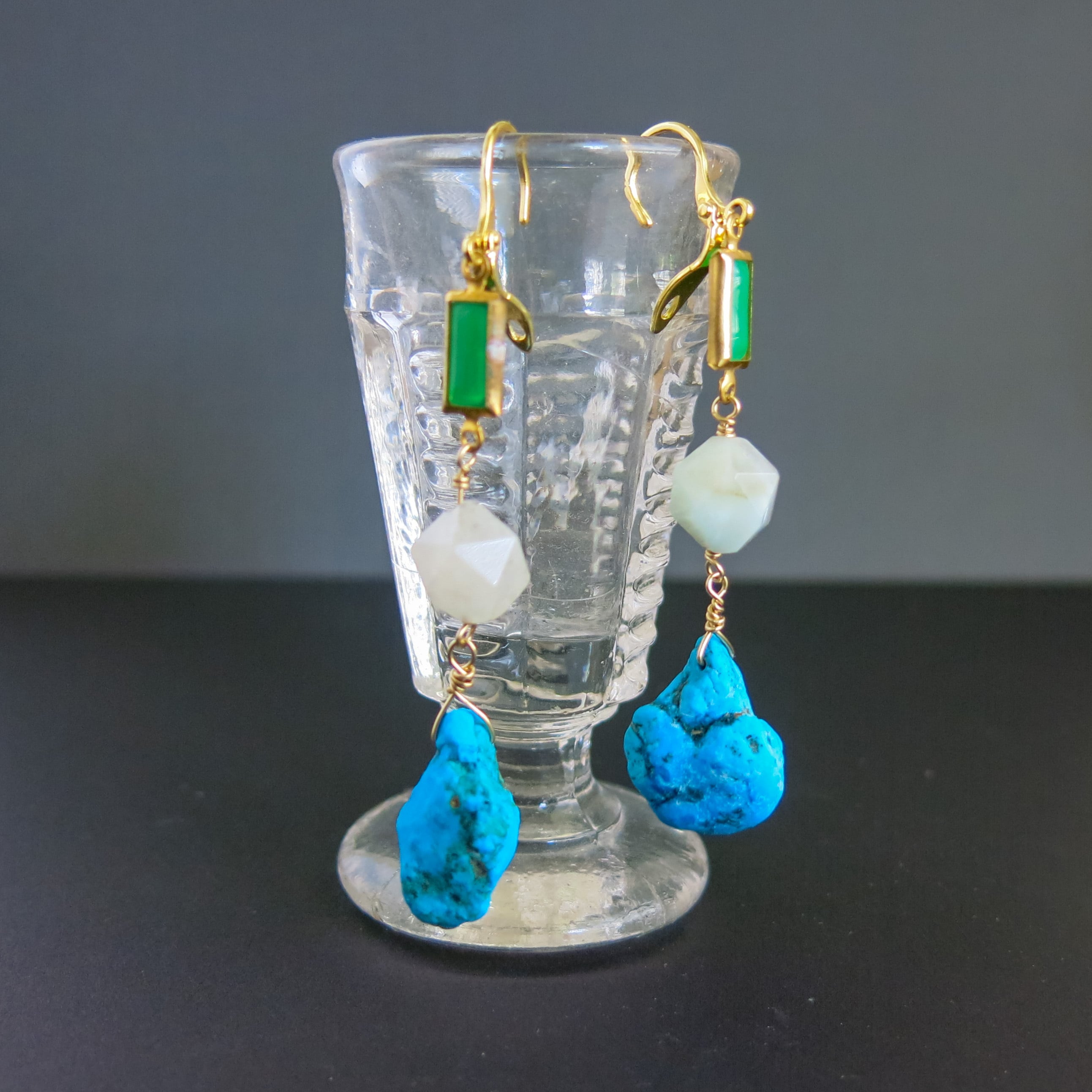 アンティークガラスパーツ×アマゾナイト×原石ターコイズのピアス