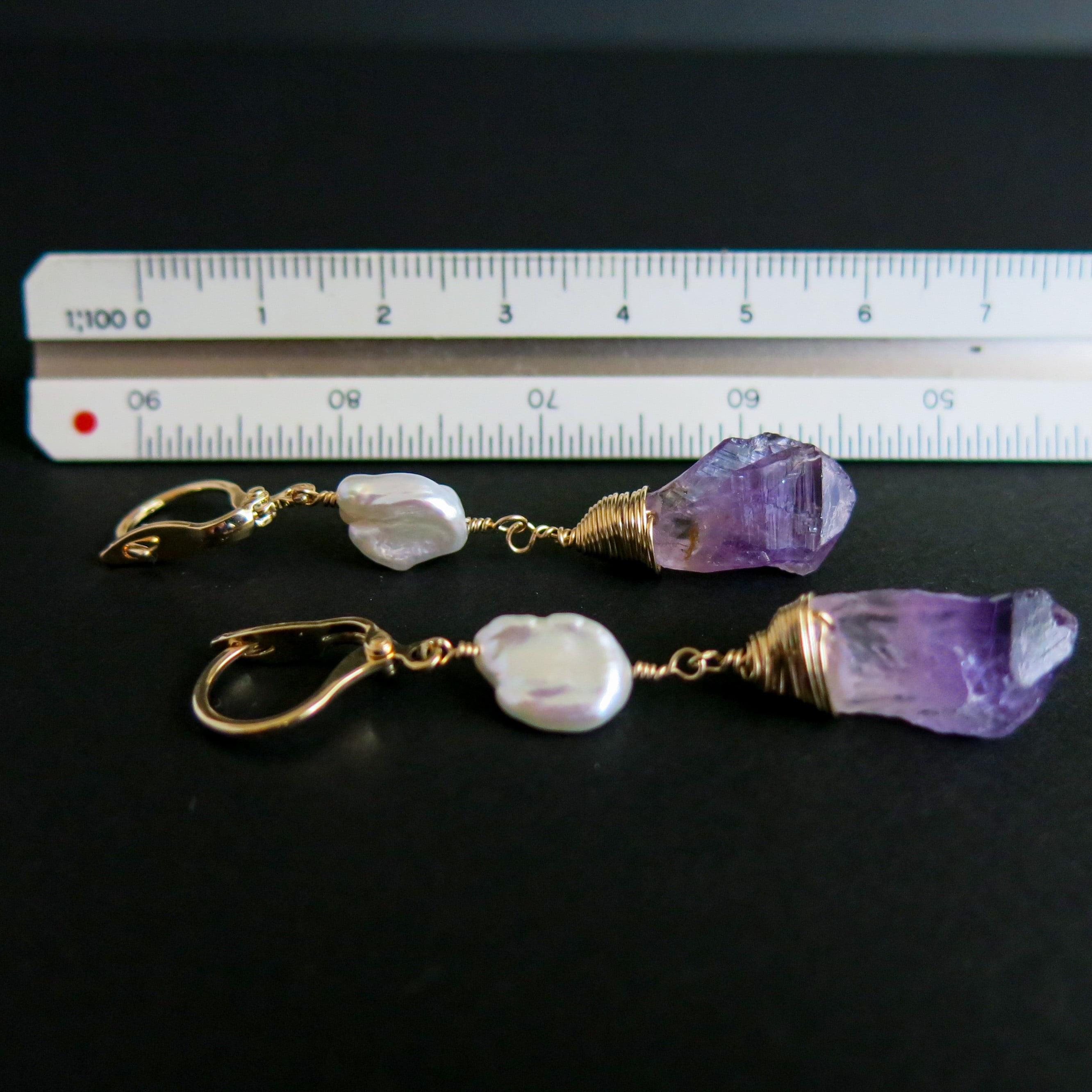 まるで採掘されたままのようなポイントアメジストに、輝きの美しいケシパールを合わせました。