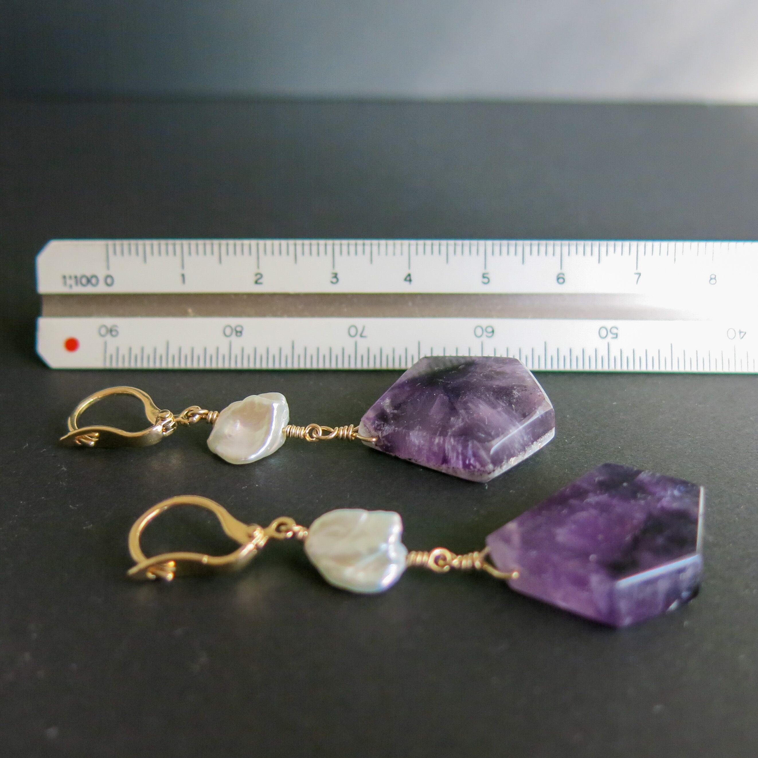 美しい輝きのケシパールに、トラピッチェアメジストのスライスカットを合わせました。
