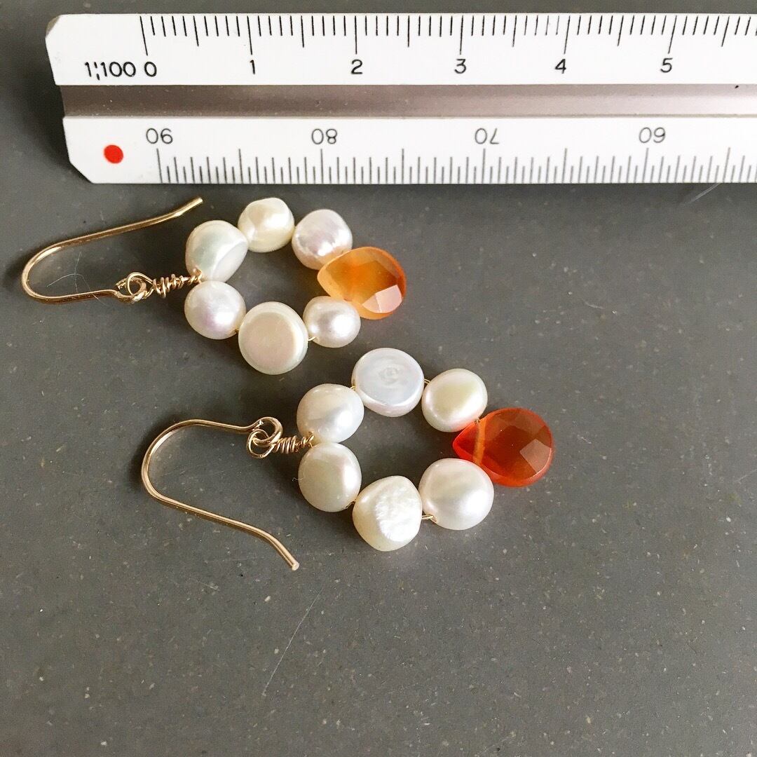 ドロップ型のカーネリアンを中心に淡水パールでサークル状にし、かわいらしく仕上げました。