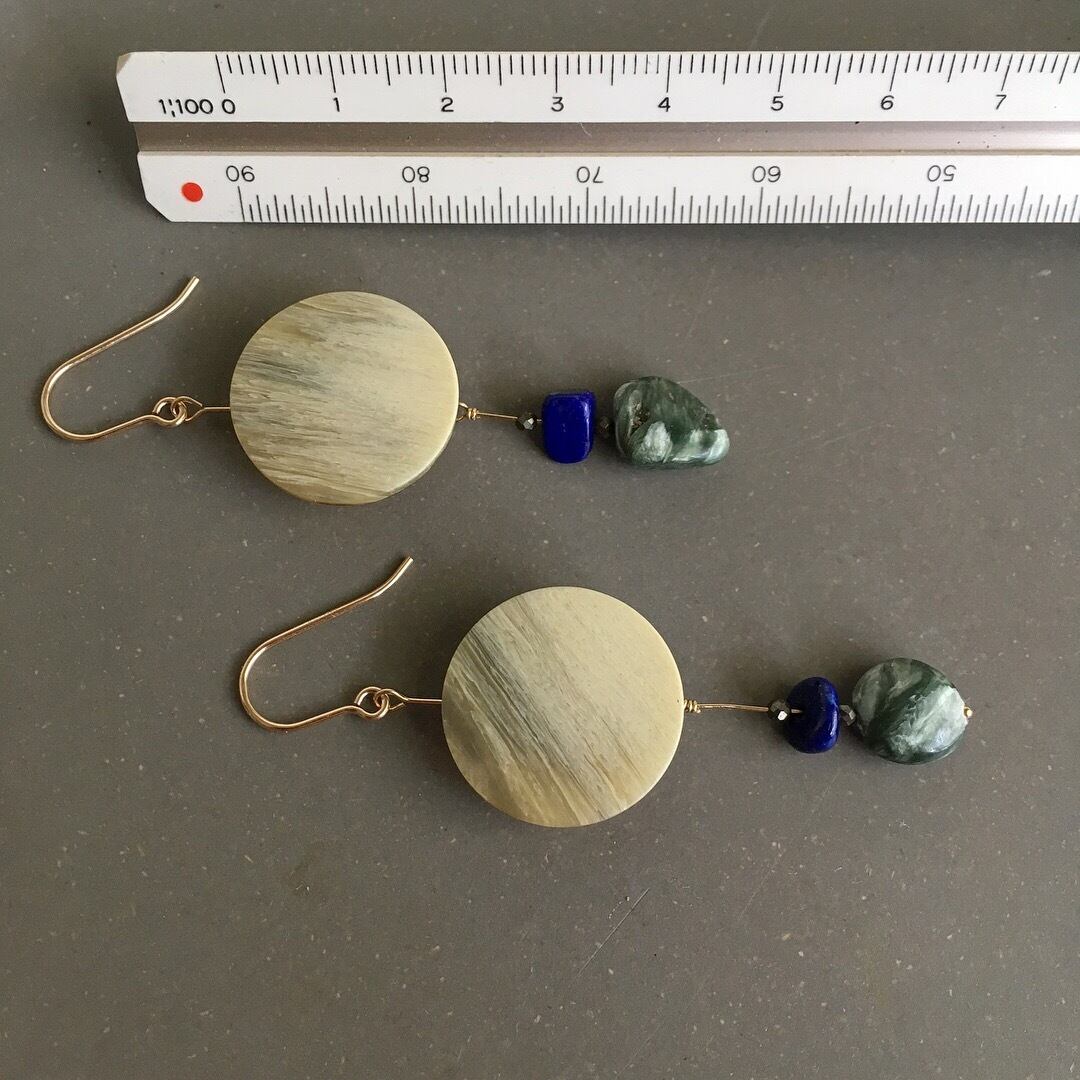 【1点もの】アンティークボタンとラピスラズリとセラフィナイトのピアス