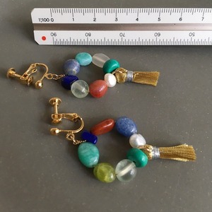 【オーダーメイド】カラーストーンのゴールドタッセルイヤリング