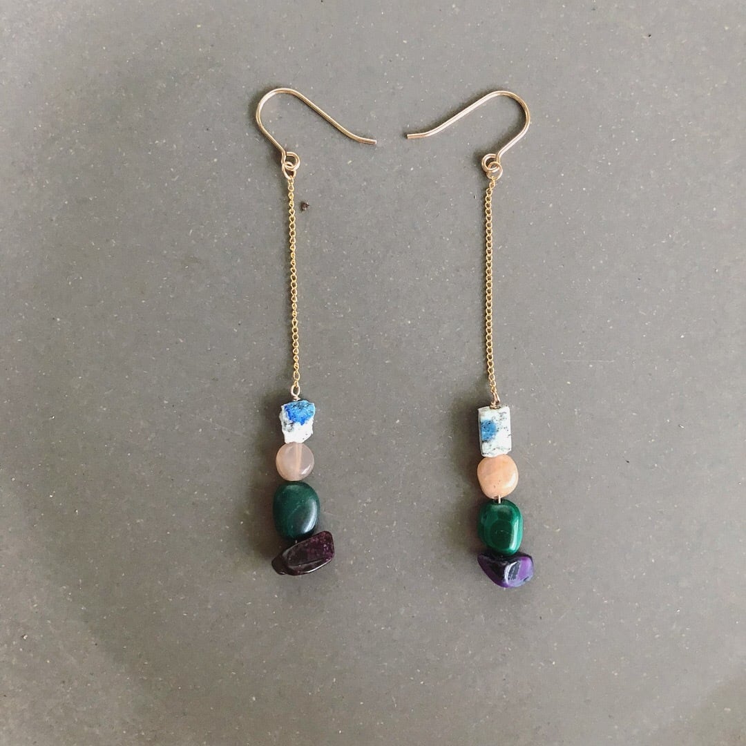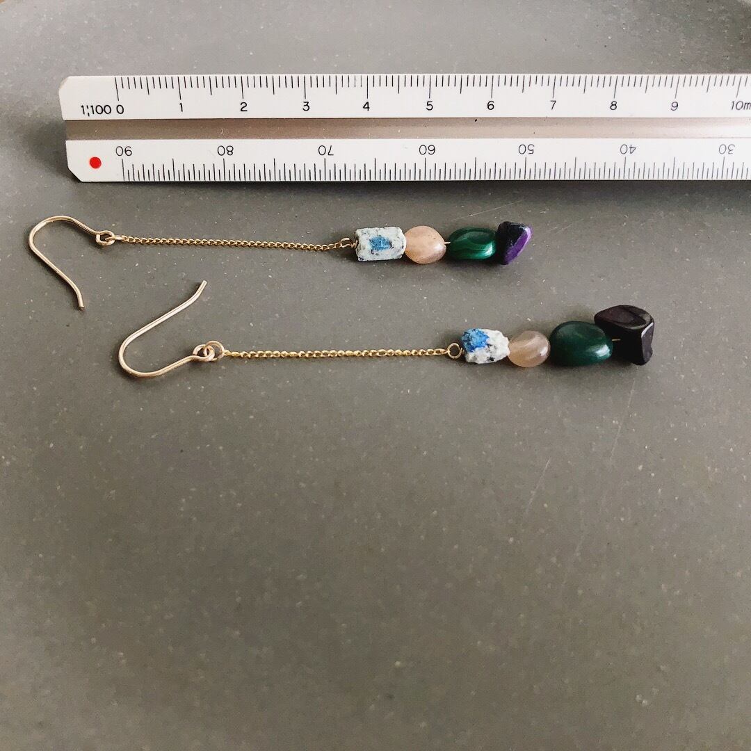 【希少!】K2アズライトとオータムカラーストーンのチェーンピアス