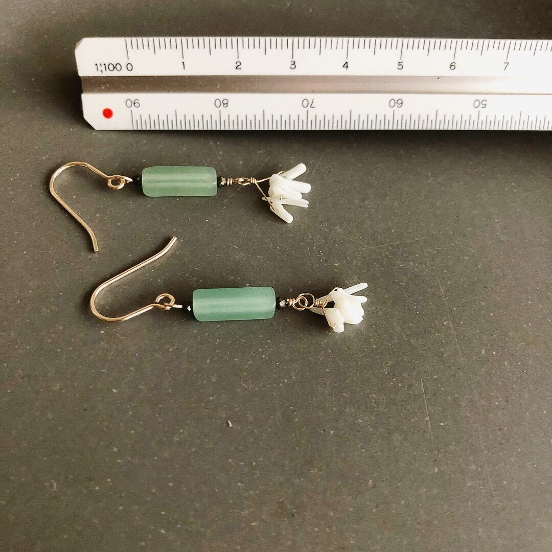 グリーンアベンチュリンとコーラルのピアス