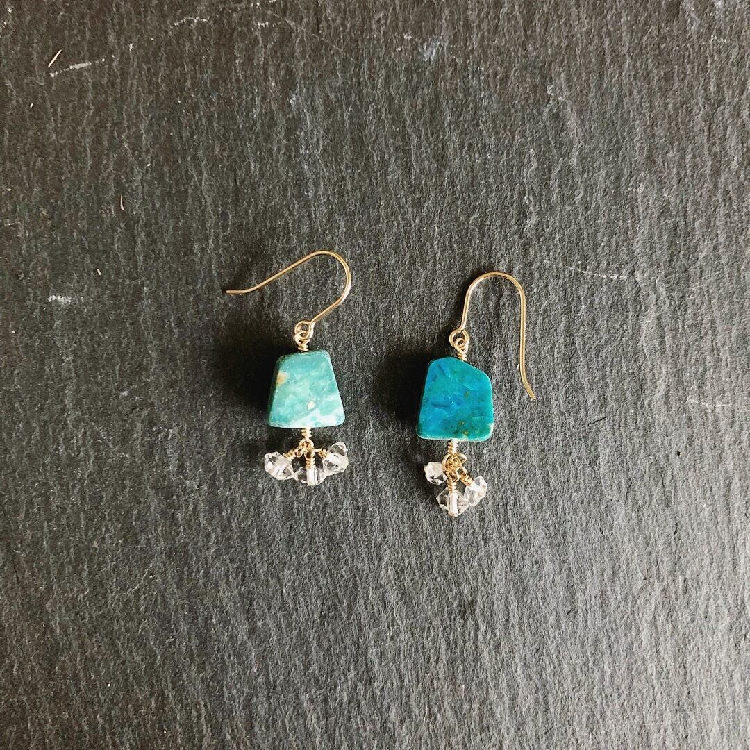 ブルーオパール×ハーキマーダイヤモンドのピアス