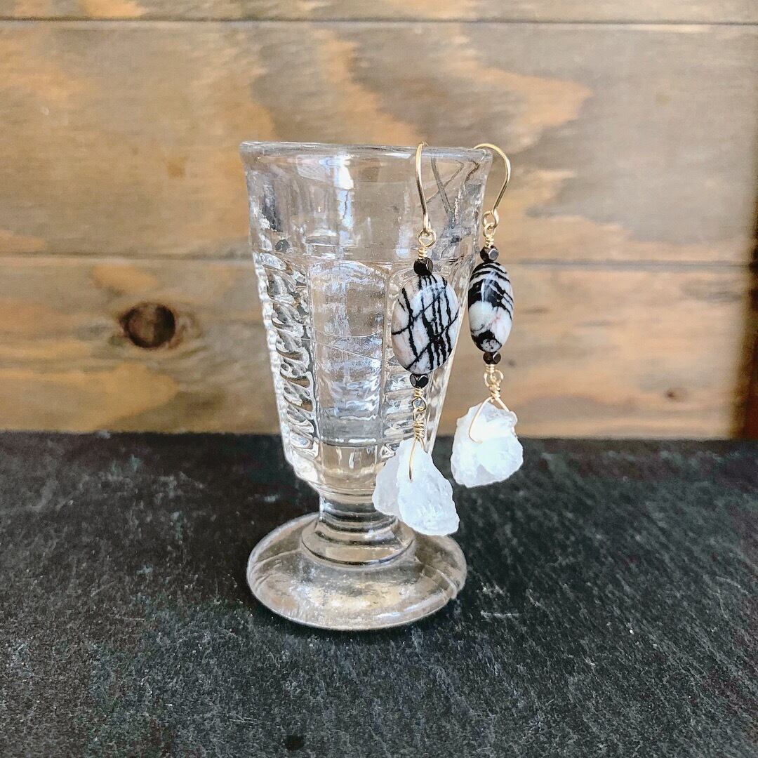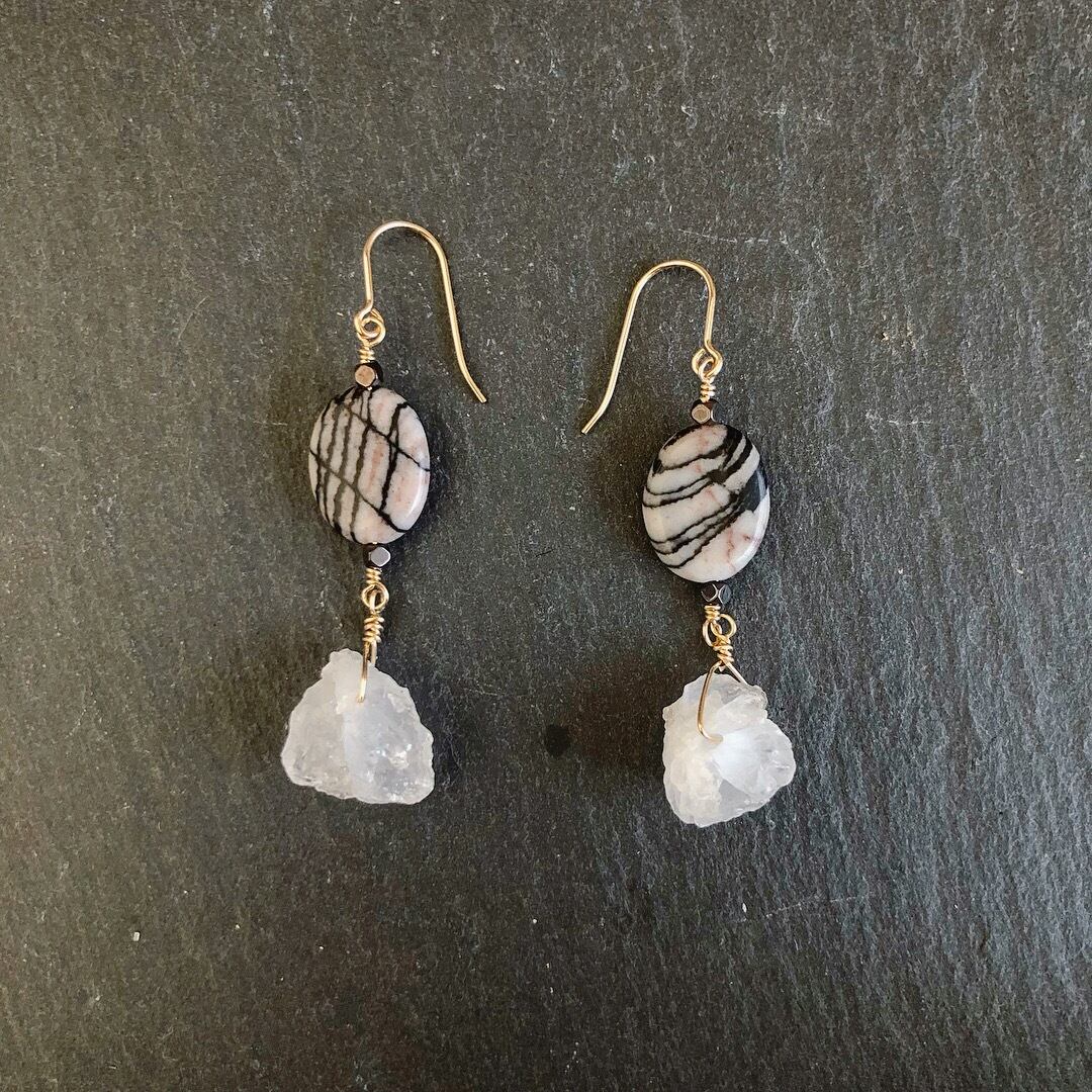 ゼブラジャスパーとドゥルージーのモノトーンピアス