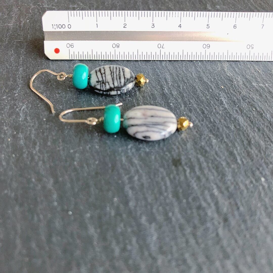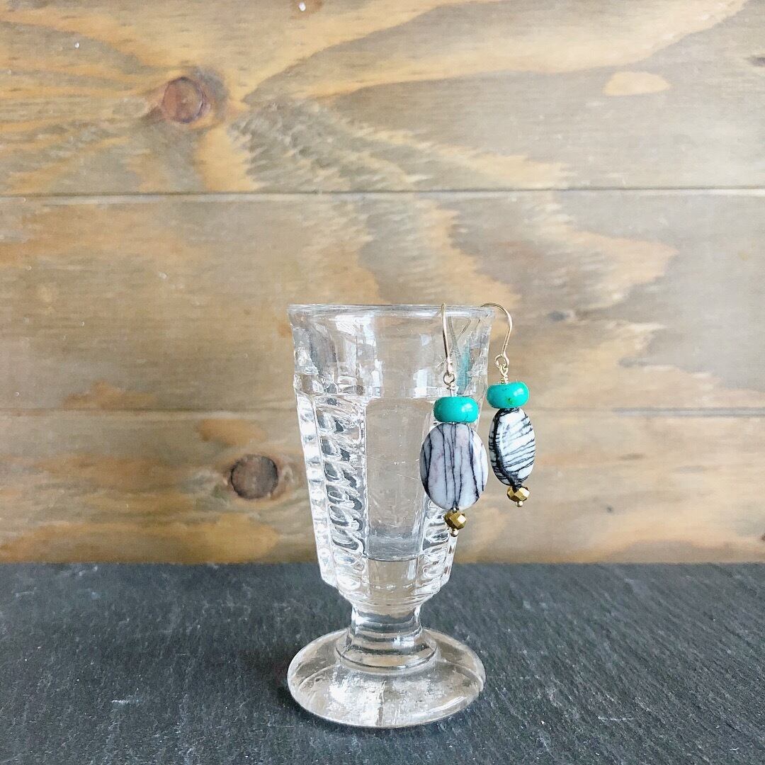 独特の模様のゼブラジャスパーに蚤の市で仕入れたアンティークのグリーンカラーターコイズを合わせました。