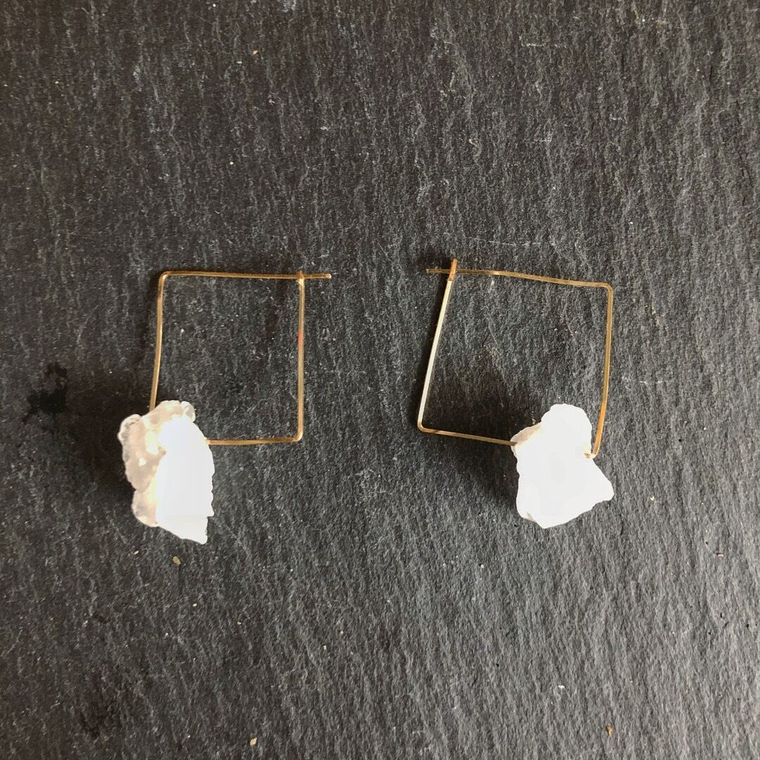 砂糖菓子をおもわせるようなドゥルージークォーツを、余分なものを全て削ぎ落としたシンプルなスクエアのオリジナルフックに仕上げました。