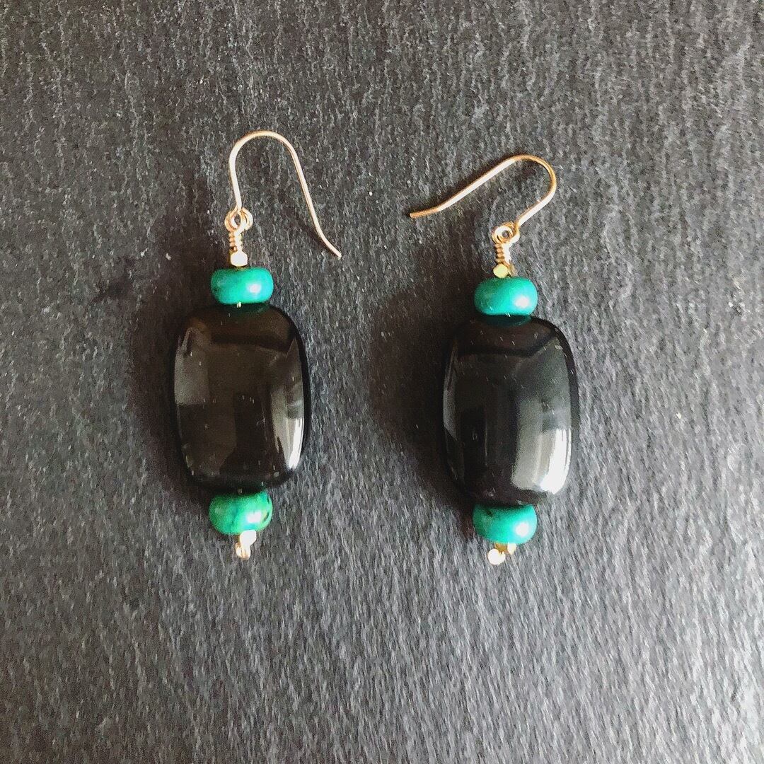【売約済】アンティークターコイズ×レインボーオブシディアンのピアス