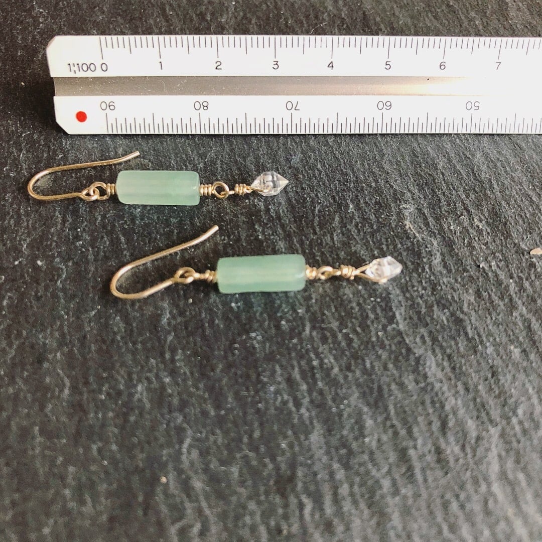 グリーンアベンチュリン×ハーキマーダイヤモンドのピアス