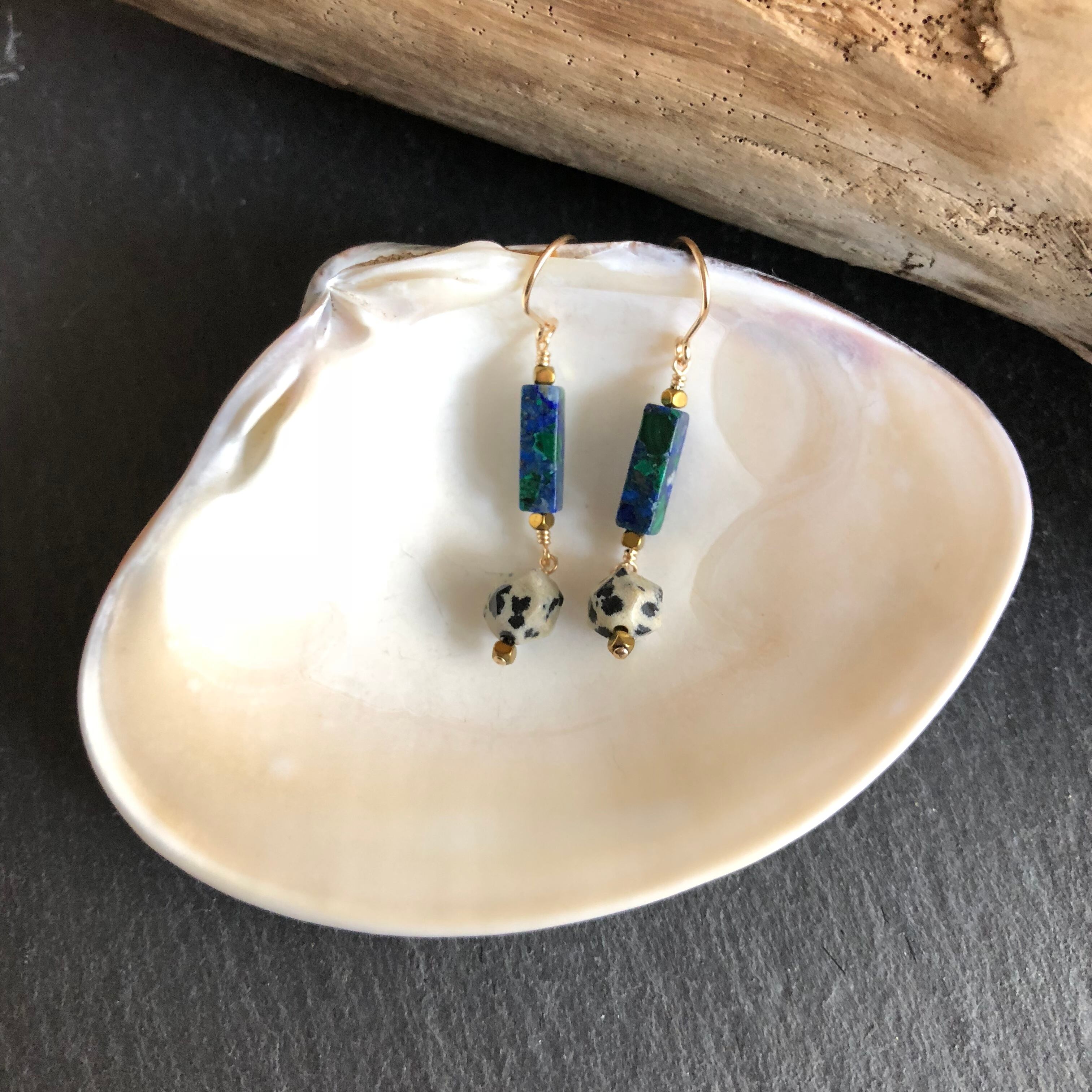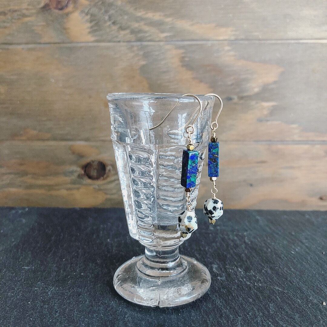 アズロマラカイト×ダルメシアンジャスパーのピアス