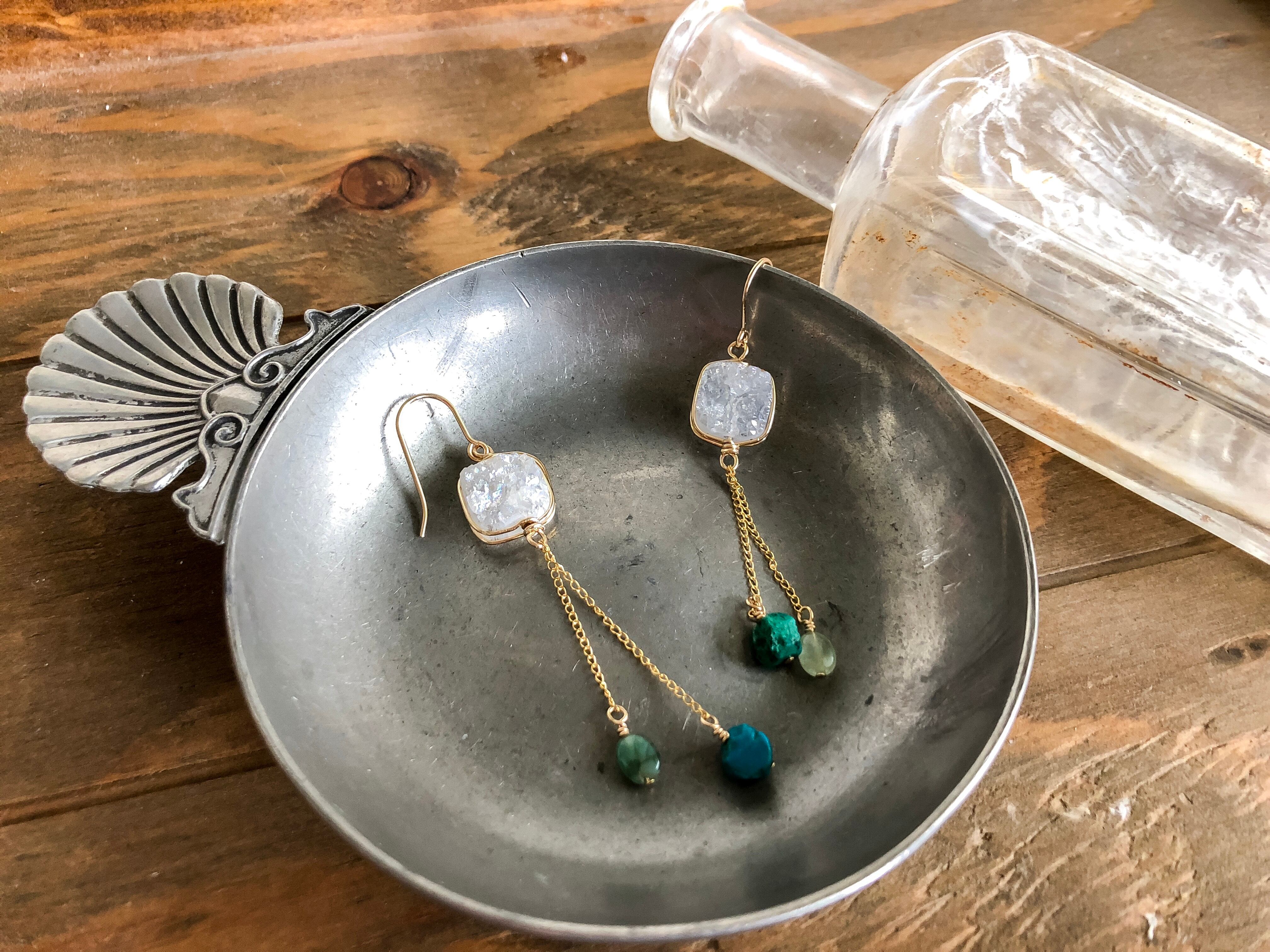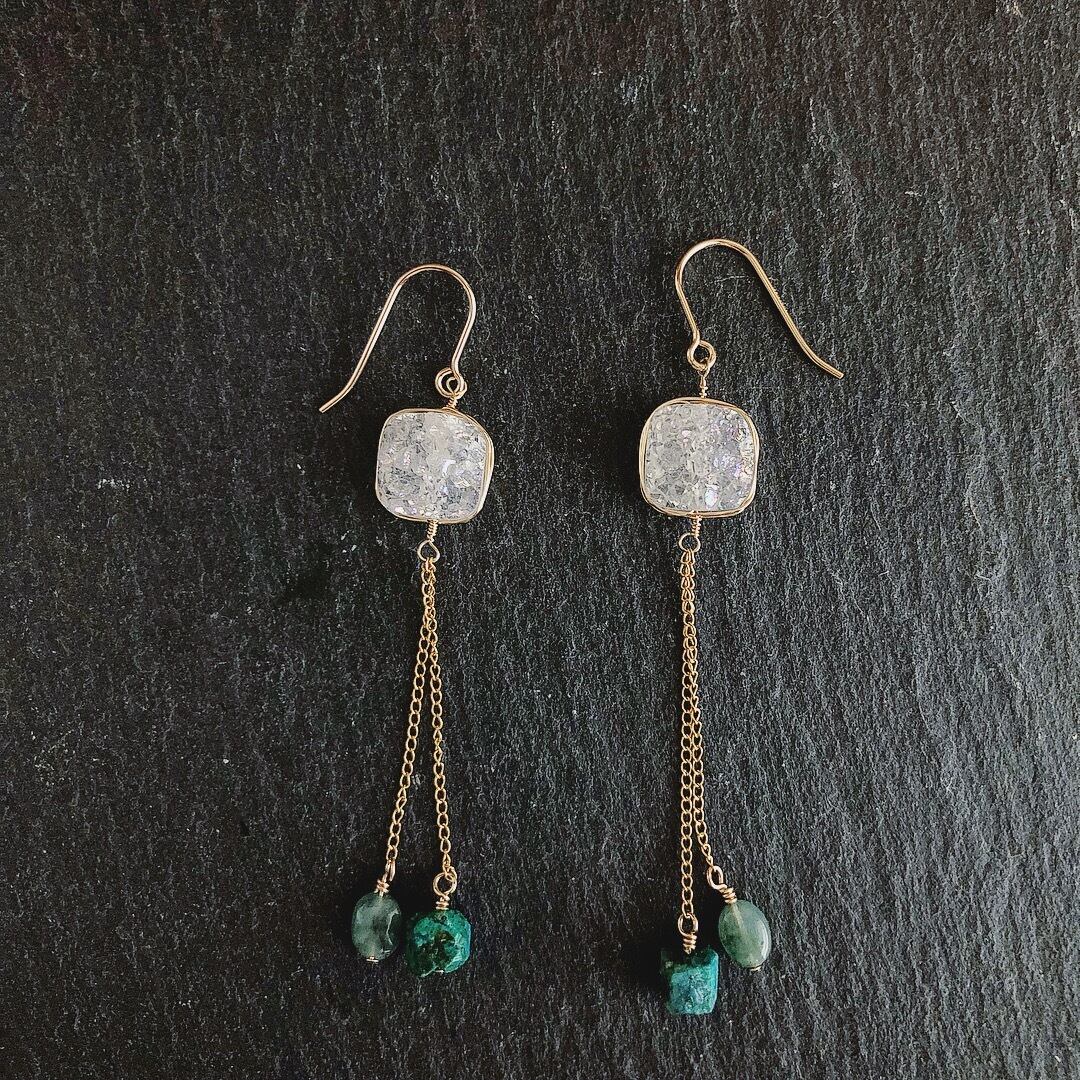 ドゥルージークォーツ×クリソコラ×エメラルドのチェーンピアス