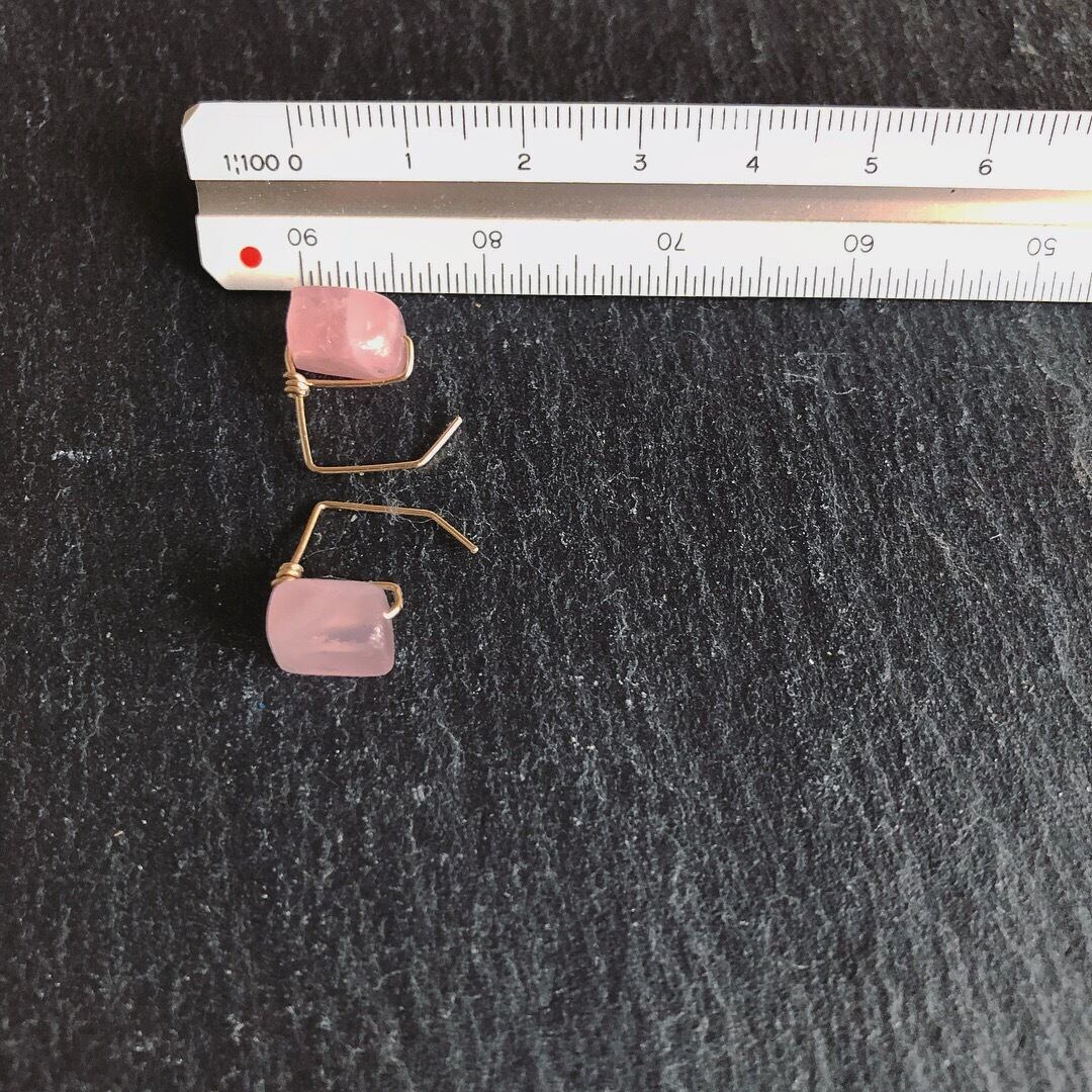 優しいピンク色のラフカットのローズクォーツを、シンプルにスタッズピアスにしました。