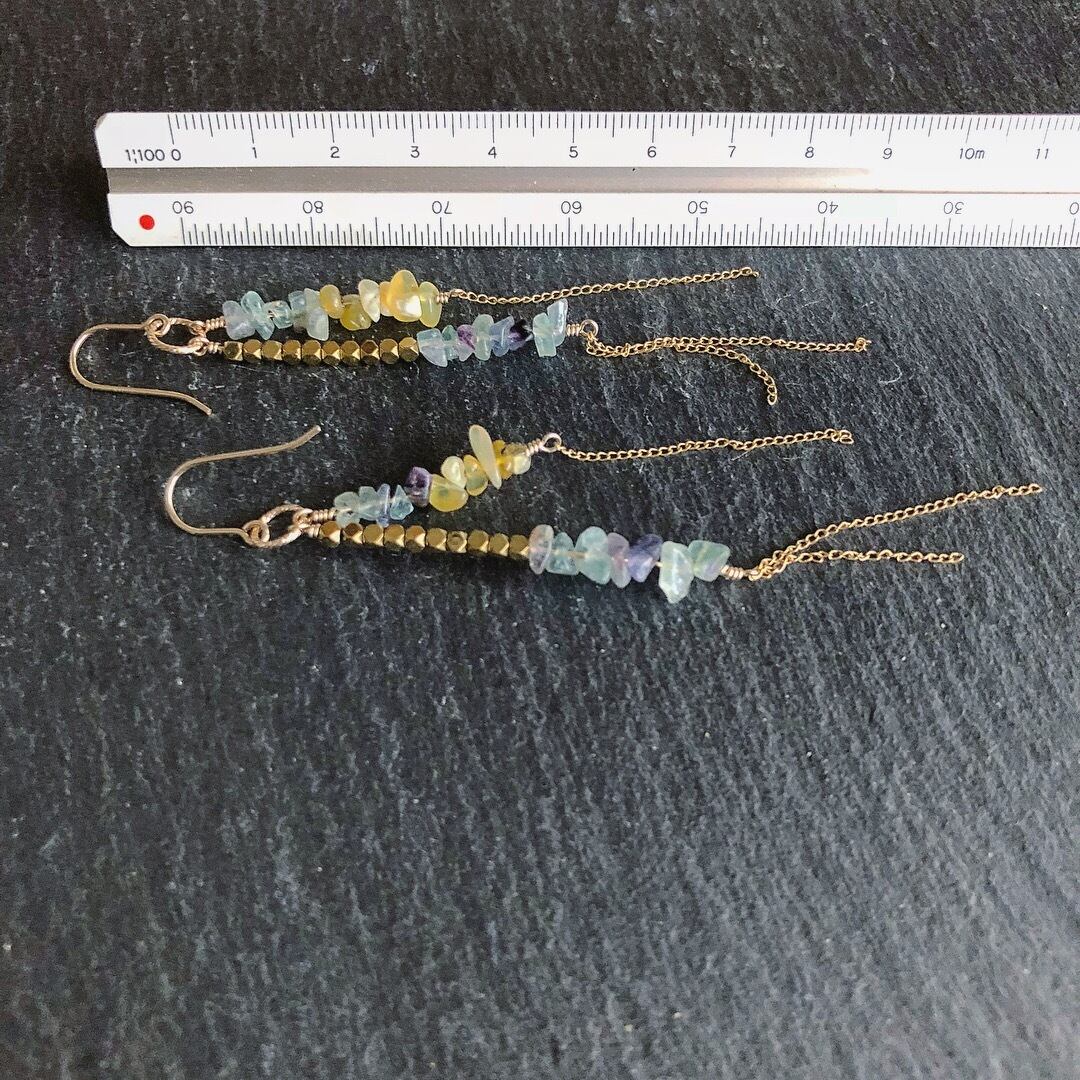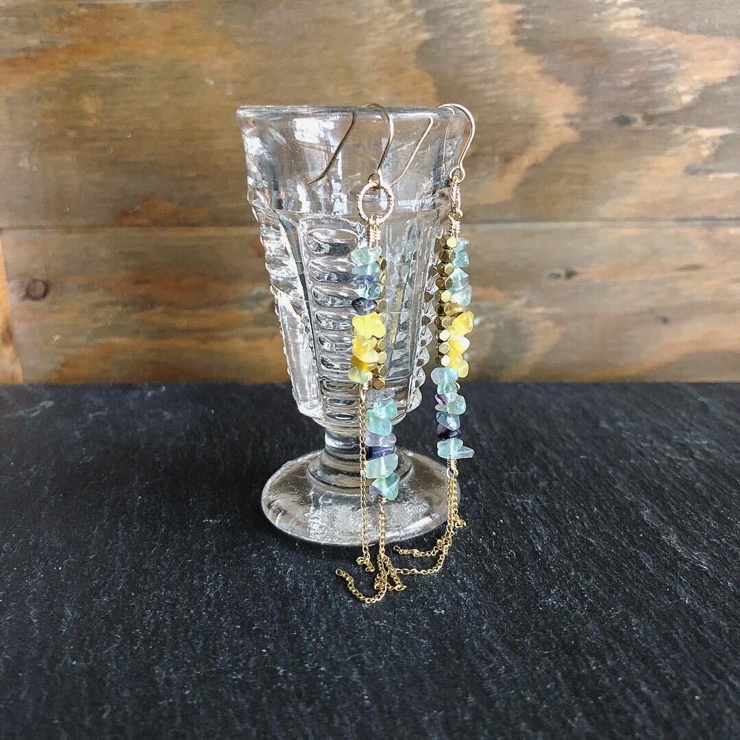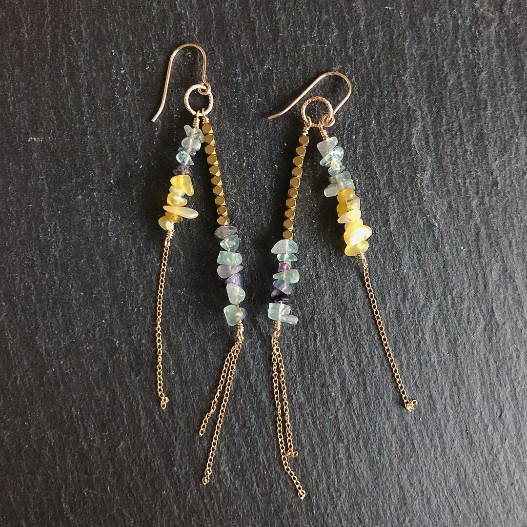 アンティークフローライト×ヘマタイト×イエローオパールのチェーンピアス